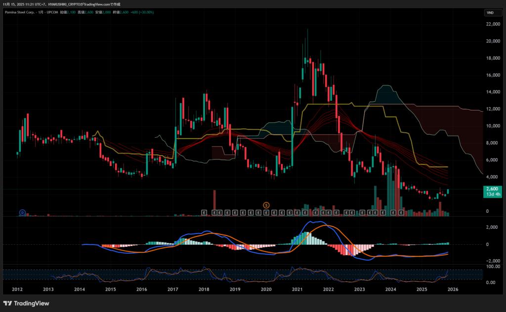 ただし、リスクも当然あります。ポミナの累積赤字3,000億VNDは簡単に解消できる金額ではありませんし、鉄鋼業界は景気循環の影響を強く受ける業界です。ベトナムの不動産市場が低迷すれば、建設用鋼材の需要も落ち込みます。